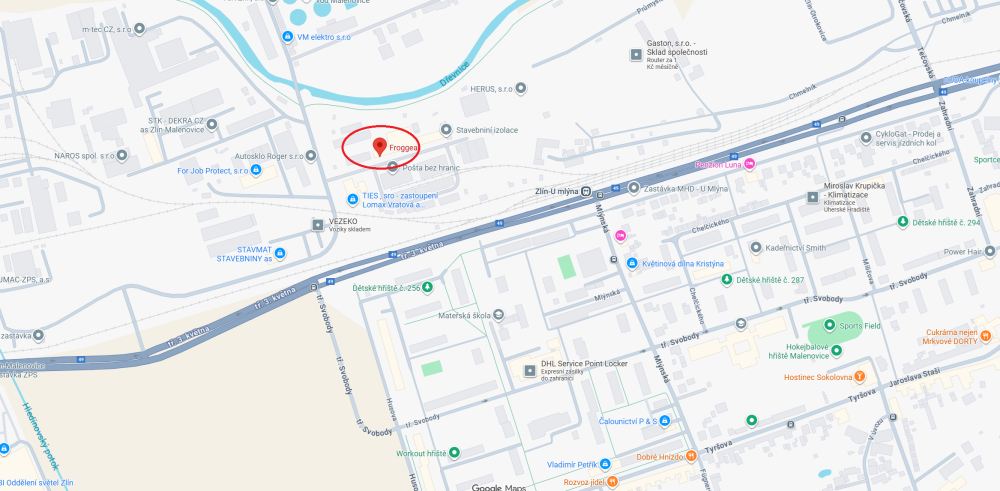 Prodejna FROGGEAR (druhá budova na levné straně po vjezdu do areálu)